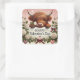 Sticker Carré Vache de Highland Valentine avec des roses blanche