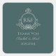 Sticker Carré Vert Élégant Argent Calligraphie Mariage Merci