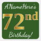Sticker Carré Vert, Faux Gold 72e anniversaire + Nom personnalis