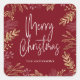 Sticker Carré Vert hiver or sur Noël rouge foncé