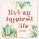 Vivez une vie inspirée en terre cuite et un autocollant de trait rétro blush avec nom personnalisé et aquarelle plantes succulents.