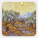 Sticker Carré Vincent van Gogh - Oliviers, Ciel Jaune et Soleil