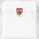 Une fille et un garçon heureux dansent main dans la main dans un grand coeur rouge. Message Valentine : Nos coeurs battent In Dance Time. Photo d'une Saint-Valentin Vintage pour enfants avec l'accueil personnalisé : "Be My Valentine".