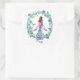 Dessin original en crayon de couleur du signe astrologique zodiaque Virgo, représenté par une belle fée entourée de la fleur de ce signe, la Gloire du Matin dessinée dans la couleur de Virgo bleu marine et l'élément du signe de la Terre.