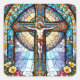 Sticker Carré Vitrail Jésus sur croix avec fleurs