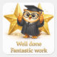 Sticker Carré Well done, fantastic work graduation owl three gol