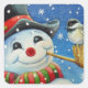 Sticker Carré Winter Snowman et Chickadee Bird Aquarelle Art