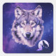 Sticker Carré Wolf Galaxy Stars Cosmique fête d'anniversaire
