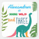 Sticker Carré Young Wild and Three, Dinosaur 3e anniversaire