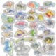 32 De mignons poissons caricaturaux provenant de récifs coralliens tropicaux hawaïens, un hippocampe, 2 poissons chèvres, un long trumpetfish et un petit sous-marin clignotent leurs formes aux couleurs vives comme des autocollants de poisson pour vous ou vos amis. 32 variétés dont le poisson perroquet, le poisson-triggeron, le poisson-papillon, et plus... Pouvez-vous trouver les 2 triggerfish ? Il y a même une tortue verte. Trouvez également 2 poissons Picasso ou humuhumunukunukuapua'a différents comme ils sont appelés. Des poissons amusants pour les plongeurs, les plongeurs ou simplement les explorateurs océaniques. Ces autocollants en vinyle peuvent orner des ordinateurs portables, des bagages, des bouteilles d'eau carnets, des casiers, des journaux... tout. Ils sont résistants aux moules, à l'eau et aux rayures.