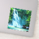 Sticker dans une illustration d'une cascade en bleu pâle avec spray blanc, entouré de blocs et de feuilles verts