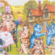 Sticker avec la peinture animale de Louis Wain Chats Relaxing in the Grounds à Napsbury (1860-1939). Un chat souriant verse du lait dans des tasses tout en regardant six petits chats boire du lait, manger des bonbons et jouer à des jeux dans un jardin. Un cadeau merveilleux pour l'art amoureux des chats et anglais.