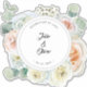 Roses aquarelles "Célébration de l'amour" avec texte personnalisable, noms et date autocollant découpé. Le thème de couleur est rose pâle, crème et blanc avec feuille verte douce. Choisissez votre taille et utilisez-le sur votre envoi de mariage, sacs cadeaux, décoration, valise de lune de miel ou autre.