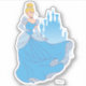 Cendrillon dans sa robe bleue avec la silhouette du château en arrière - plan.