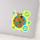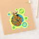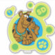 Découvrez cette pose Scooby-Doo classique et des éléments graphiques dans ce badge circulaire.