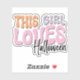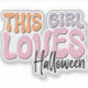 Ce design ludique et coloré comprend l'expression "This Girl Loves Halloween" en lettres audacieuses et rétro. Le texte est divisé en trois lignes, chaque ligne ayant une palette de couleurs distincte. Le mot "This" est dans une orange douce texturée, "GIRL" dans un violet pastel, et "LOVES" dans un rose bubblegum clair. Le mot "Halloween" est écrit dans un cursif noir et lisse, ajoutant du contraste et de l'équilibre au design. Chaque lettre a une forme légèrement arrondie, mousseuse, donnant à la conception une sensation amusante et fantaisiste, parfait pour célébrer l'esprit festif et léger d'Halloween.