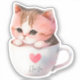 Sticker Chat blanc-rose mignonne dans une tasse de thé (2)