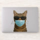 chatte blanche hyper-réaliste rocking cool lunettes noires et masque facial.
