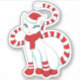 sticker pour chat de Noël avec un chaton caricaturale blanc mignon et beau avec de longues cils en casquette rouge, foulard, gants et bottes, sa queue courbée décorée de ruban rouge. La neige tombe dans la forêt et la lune brille joyeusement. Ce joli personnage de félin est de l'humeur de vacances, attendant le réveillon de Noël à venir.
