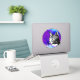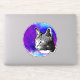 Obtenez une décoration unique avec votre ordinateur portable avec cet autocollant tendance. Il a un design de chat détaillé en noir et blanc. L'arrière - plan est une nébuleuse circulaire violette et bleue. Les chats spatiaux sont éternels !