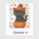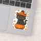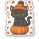 Sticker Chat noir mignon assis sur Citrouille Automne esth