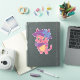 La colle n'est pas très collante. Le point positif est que le collant s'enlève facilement. Le point négatif est que les côtés "frisent" un peu, je l'ai collé sur mon ordinateur et quand je le met et l'enlève de mon sac, ça abime un peu les rebords. Mais ça tient quand même depuis quelques semaines sans problème, c'est juste les côtés qui sont un peu abimés. Je suis très satisfaite de la qualité de l'impression. Les couleurs sont fantastiques et tiennent bien le coup.