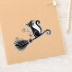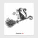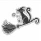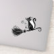Sticker Chat sorcière noire sur un balai d'Halloween