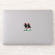 La colle n'est pas très collante. Le point positif est que le collant s'enlève facilement. Le point négatif est que les côtés "frisent" un peu, je l'ai collé sur mon ordinateur et quand je le met et l'enlève de mon sac, ça abime un peu les rebords. Mais ça tient quand même depuis quelques semaines sans problème, c'est juste les côtés qui sont un peu abimés. Je suis très satisfaite de la qualité de l'impression. Les couleurs sont fantastiques et tiennent bien le coup.