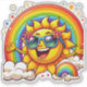 A vibrant, smiling sun radiates joy while wearing stylish sunglasses. It stands out against a colorful backdrop of clouds and a captivating rainbow. The energetic scene encourages positivity and warmth, reminding everyone to embrace happiness.
