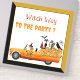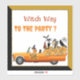Autocollant vinyle personnalisé découpé sur mesure représentant l'équipage d'Halloween composé de chat, chauve-souris, hiboux et sorcière. L'illustration représente un équipage de sorcières se rendant à une fête d'Halloween. Le TEXTE peut être facilement personnalisé.