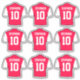 Autocollants de football. Stickers qui sont des Chemises de Football Rouge et Blanc avec un Nom et un Numéro de Chemise que vous pouvez personnaliser avec le Nom et le Numéro de votre Choix.