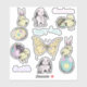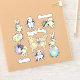 Ajoutez une touche festive à vos cadeaux de Pâques avec notre délicieux ensemble de 10 autocollants vinyle Kiss-Cut. Parfait pour décorer paniers de Pâques, sacs cadeaux et cartes, nos autocollants ajoutent une touche ludique et festive à vos célébrations de vacances. Dessiné à la main par Nathalie Portet à l'encre noire, ces motifs sont ornés de belles couleurs pastel, chaque autocollant présente de charmants motifs de Pâques, dont des poussins à l'oreille de lapin, des oeufs colorés de Pâques, des lapins adorables et un papillon flottant. L'ensemble comprend également 2 autocollants personnalisés de nom, vous permettant de customiser vos cadeaux avec une touche spéciale. Répandez la joie et encouragez cette Pâques avec notre collection d'autocollants enchanteur!