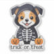 C'est un autocollant d'Halloween mignon qui présente un chien de compagnie mignon en costume d'Halloween qui ressemble à un squelette. Vous pouvez customiser le texte par défaut "trşck ou traiter".