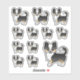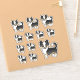 Illustration originale de Destei d'un chien de race Chihuahua, long manteau de tricolore noir. La conception est placée 12 fois sur la feuille en trois tailles différentes. Il y a un chien plus gros, trois chiens de taille moyenne et huit chiens de petite taille.