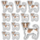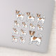 Dessin original de Destei illustrant un manteau blanc et bronzé / brun et blanc rugueux Jack Russell Terrier chien de race. La conception est placée 12 fois sur la feuille en trois tailles différentes. Il y a un chien plus gros, trois chiens de taille moyenne et huit chiens de petite taille.
