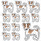 Dessin original de Destei illustrant une blouse blanche et bronzée / brune et blanche et lisse Jack Russell Terrier chien de race. La conception est placée 12 fois sur la feuille en trois tailles différentes. Il y a un chien plus gros, trois chiens de taille moyenne et huit chiens de petite taille.