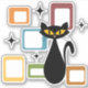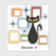 Illustration colorée de style abstrait du milieu du siècle avec chat noir, étoiles noires et cubes colorés décoration sur arrière - plan blanc. Vous pouvez ajouter votre nom/monogramme pour personnaliser l'article.