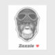 Ce dessin présente le portrait d'un chimpanzé portant un casque et un goggle vintages pour moto.
