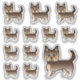 Dessin original de Destei illustrant une jolie couleur chocolat Yorkshire Terrier / Yorkie race dog. La conception est placée 12 fois sur la feuille en trois tailles différentes. Il y a un chien plus gros, trois chiens de taille moyenne et huit chiens de petite taille.