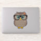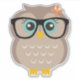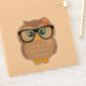 Belle illustration d'une chouette chouette brune portant des lunettes de lecture surdimensionnées et une fleur d'orange sur la tête.