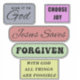 Ensemble de cinq citations chrétiennes. Donnez-le à Dieu, choisissez Joie, Jésus Sauvons, Pardonné, Avec Dieu toutes les choses sont possibles.