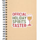 Quote: Official Holiday Spirits Taster. Red, green text. Decorated with a glass of wine