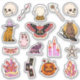 Ce sticker citrouille Halloween magique est livré avec cristaux, crânes, citrouilles, baguettes magiques, hibou avec pleine lune, papillon luna, sorcière casquette, bougies, boule de cristal, pentagramme en bois, et un chaton magique ! Prenez une Halloween magique !