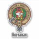 badge de crête Buchanan entouré d'une courroie et boucle sur l'arrière - plan tartan clan. Texte personnalisé.