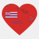 Autocollant de coeur avec le drapeau et la carte du comté d'Hawaii avec chaque comté étiqueté et dans des couleurs différentes.