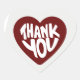 The image shows a heart-shaped sticker with a deep red heart centered on a white outline/background. Inside the heart, the words “THANK YOU” are written in bold, playful white lettering, slightly irregular, giving it a warm, handwritten feel. The overall style is friendly and expressive, often associated with gratitude, appreciation, or kindness.