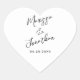Cet autocollant de mariage personnalisé présente un design de script de calligraphie noir à la main moderne et minimaliste sur un simple arrière - plan blanc. Personnalisez avec vos noms et votre date de mariage. Meilleurs voeux pour votre mariage et mariage ! Conçu par Susan Coffey.