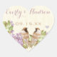 Sticker Coeur Inséparable Lavender Lilac Mariage. Lavande et Sceau Mariage Tan Or. Informations sur la lavande Typographie de script et Bronze tourbillons au-dessus d'une jolie branche d'arbre couvrant en fleurs de printemps douces avec deux inséparables romantiques doucement assis l'un à côté de l'autre.Mariages d'oiseaux Vintages et Occasions spéciales idéal pour les faveurs de mariage ou les phoques Mariages pour les enveloppes d'invitation