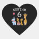 Joyeux 6e anniversaire. Funny and lovely Kids Birthday design with a cute Elephant, two ferrets and a girafe celebrating your birthday at the zoo.