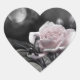 Sticker en forme de coeur Enchanted Nights Enchanted Belle rose rose douce avec "mouche dragon" assise sur pétale au clair de lune.